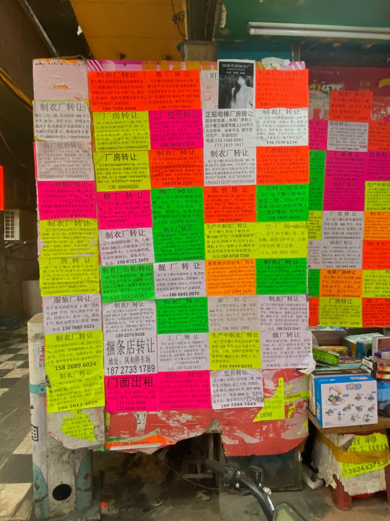 The demolition plan also left factory owners uncertain about their future. In Kanglu, you can see advertisements posted by factory owners for factory transfers.